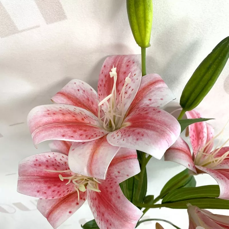 အဆိုပါအတုကျားလီလီပန်းပွင့်တစ် ဦး ချင်းစီကိုပိုး + ပလပ်စတစ် + သံဝါယာကြိုးနှင့်အတူအစိုင်အခဲဖွဲ့စည်းတည်ဆောက်ပုံနှင့်ညှိနိုင်သောပုံသဏ် todual ာရေးနှင့်အတူ, အထူးသဖြင့်အတုလီလီစင်တာများ, desktop ပန်းပွင့်အနုပညာ, နောက်ခံနံရံအလှဆင်နှင့်ကြမ်းခင်းနံရံလန္တတ်အလှဆင်ခြင်းများကဲ့သို့သောမြင်ကွင်းအမျိုးမျိုးအတွက်သင့်တော်သည်။ Tiger Stripe ပုံစံသည် space ကိုထူးခြားသည့်စိတ်ထားတစ်ခုပေးပြီးခေတ်မီပုံစံ, သစ်တောမင်္ဂလာဆောင်သို့မဟုတ်အပူပိုင်းအကြောင်းအရာများကိုအလွှာတစ်ခုဖန်တီးရန်သင့်တော်သောစိတ်ထားတစ်ခုပေးသည်။
