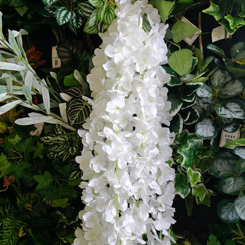 ကြိုးဝိုင်းကြိုးအတုပန်းပွင့်များသည် wisteria စပျစ်နွယ်ပင်ငါးခုရှိပြီးအလှဆင်ခြင်း၏သိပ်သည်းဆကိုသိသိသာသာတိုးပွားစေသည်။